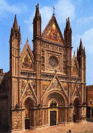 Im Südosten der Stadt steht an der Piazza del Duomo der Dom, eines der schönsten Bauwerke der italienischen Gotik. Das Gotteshaus, aus schwarzem Basalt und graugelbem Kalkstein in wechselden Lagen errichtet, wurde 1290 zur Erinnerung an das Wunder von Bolsena geschaffen.